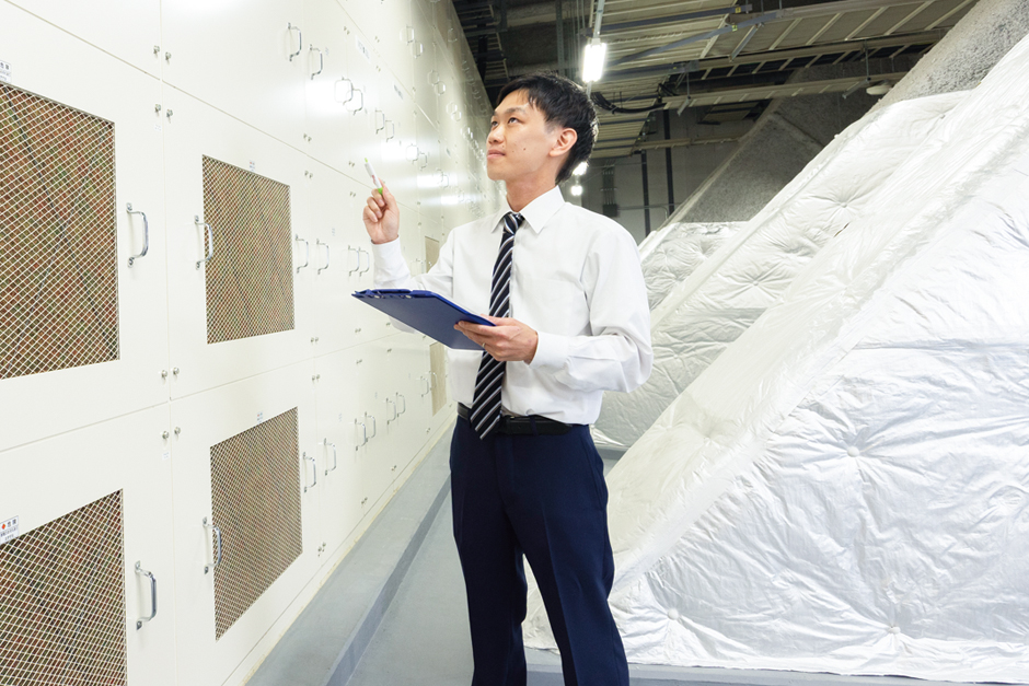 ビル・施設・テナントの快適さを守り続ける技術部チーム。空調・電気などの設備を管理し、日々の“あたりまえ”を支える社員たちの思いとは。各拠点を代表する若手社員2名が、仕事に対するこだわりやこれからの目標を語ります。