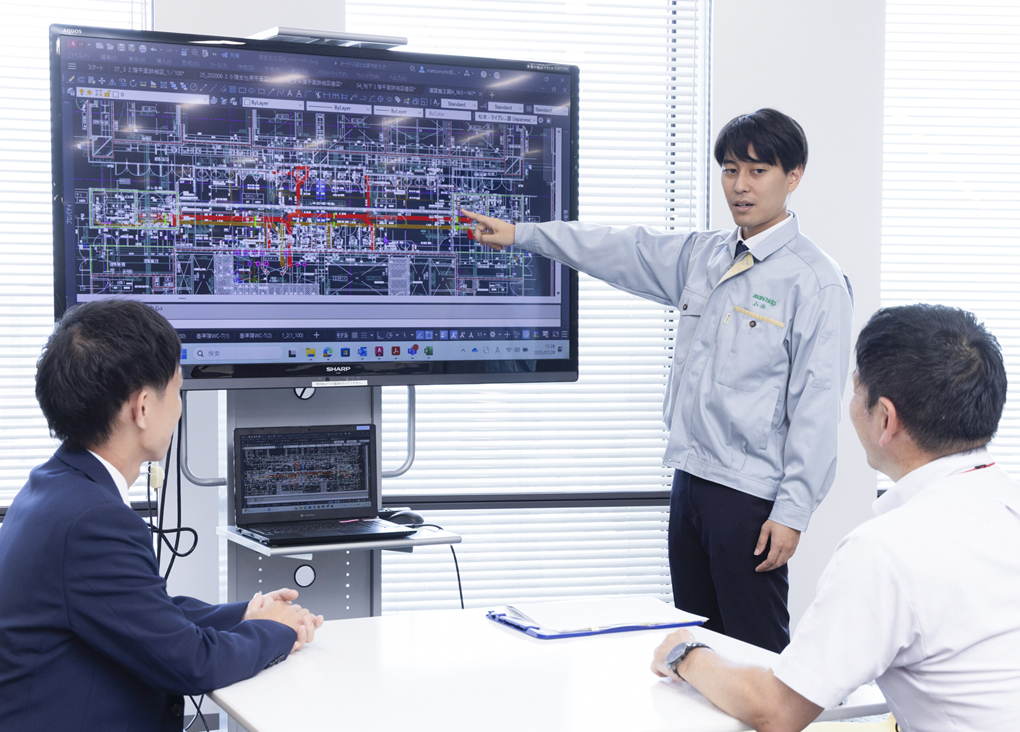 ビル・施設・テナントの快適さを守り続ける技術部チーム。空調・電気などの設備を管理し、日々の“あたりまえ”を支える社員たちの思いとは。各拠点を代表する若手社員2名が、仕事に対するこだわりやこれからの目標を語ります。