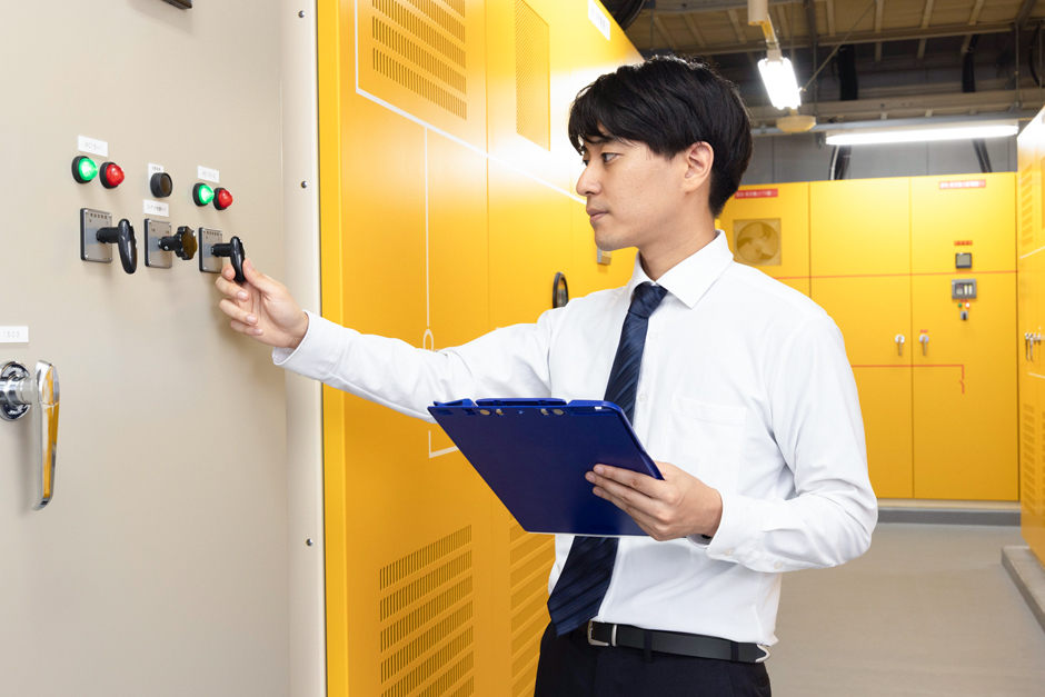 ビル・施設・テナントの快適さを守り続ける技術部チーム。空調・電気などの設備を管理し、日々の“あたりまえ”を支える社員たちの思いとは。各拠点を代表する若手社員2名が、仕事に対するこだわりやこれからの目標を語ります。