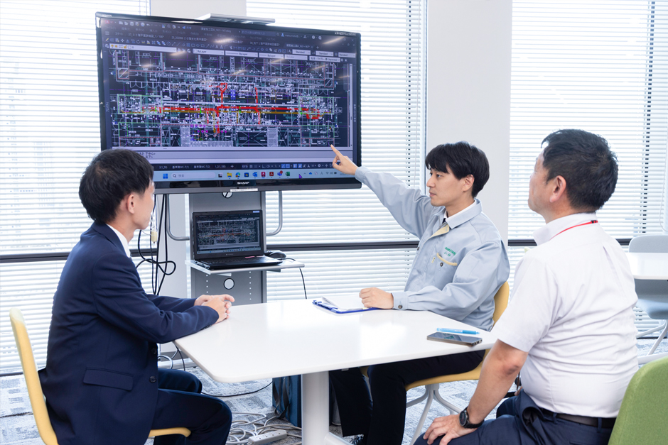 とてもわかります。それと、技術部は少数精鋭であるため、若手にも規模感の大きな工事などを担当する機会が多くあります。計画から竣工まで一気通貫で経験できるので、早くからこの仕事の魅力に触れられました。三谷さんは、どこに働きがいを感じますか?